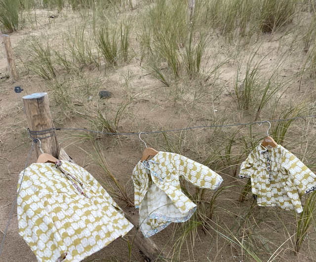 Blouse cacahuète 100% coton . Entièrement ouverte dans le dos pour un habillage plus facile .se ferment par un lien dans le haut du dos . Petit poigné resserré par un élastique .